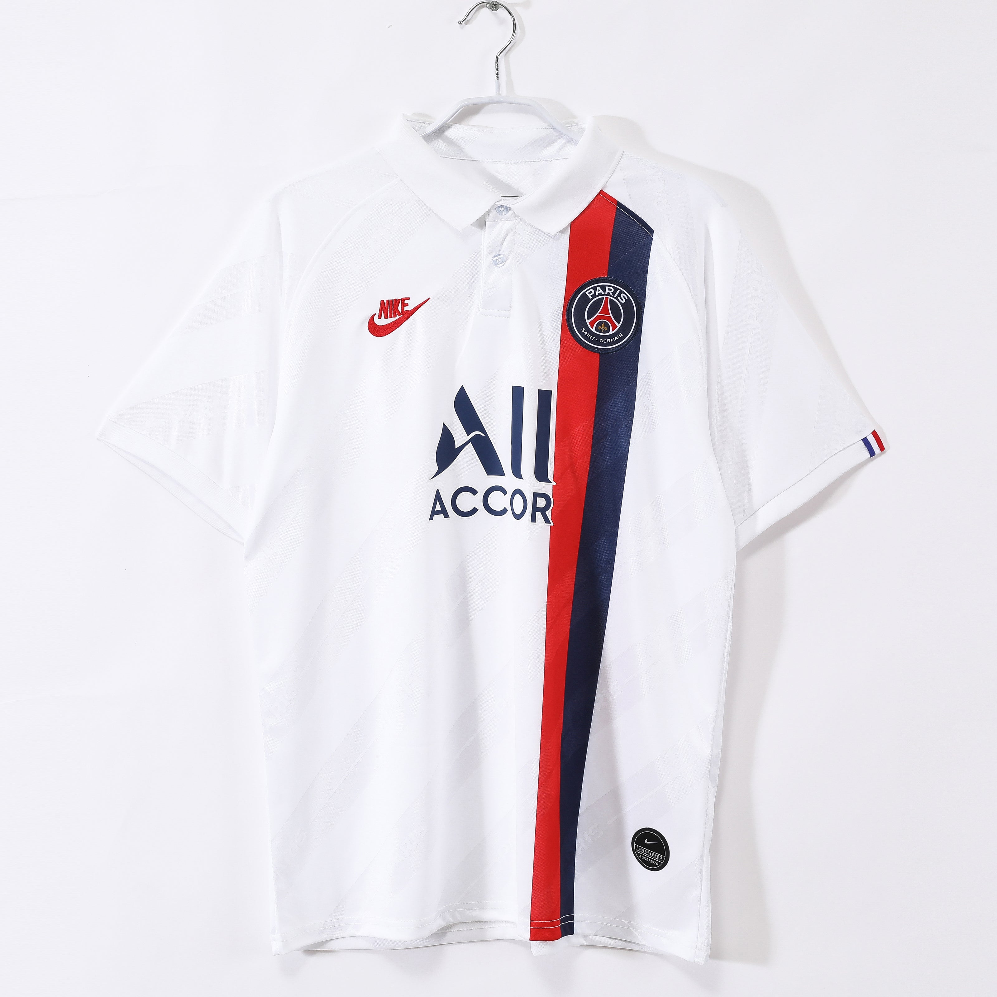 Descripción: La camiseta presenta un diseño predominantemente blanco con detalles en azul oscuro y rojo, manteniendo los colores tradicionales del club pero con un estilo moderno y limpio. Este modelo destaca por sus líneas minimalistas y la incorporación de un patrón sutil en el tejido que le da textura y profundidad. El sponsor principal fue Accor Live Limitless (ALL), cuyo logo apareció en el pecho con un diseño contemporáneo. Esta camiseta fue usada tanto en la Ligue 1 como en competiciones europeas, reflejando la identidad parisina con un toque fresco.
